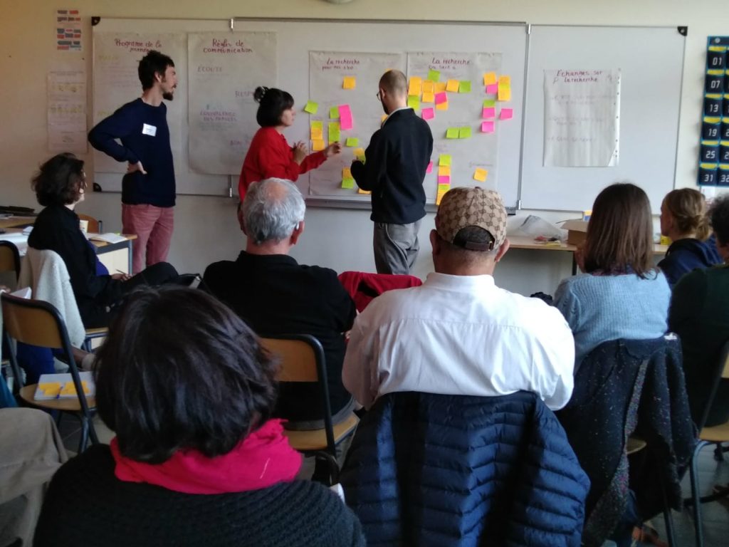 Un premier atelier a ensuite permis de croiser les regards sur ce que recouvre la recherche et ses finalités. Dans un second temps, plusieurs chercheurs ont apporté leur témoignage sur leurs pratiques dans le cadre d’expérimentations inspirées de la SSA, en abordant notamment leur posture et leurs questionnements. Ces interventions ont contribué à illustrer la diversité des approches de recherche mobilisées. L’après-midi a été consacrée à des ateliers en groupe, centrés sur les besoins, les difficultés et les enjeux liés aux collaborations entre chercheurs et acteurs de terrain dans le cadre précis des expérimentations inspirées de la SSA. Ces échanges ont permis de faire émerger des attentes et de nourrir la structuration des objectifs du GTIO. Parmi les priorités identifiées figurent notamment le renforcement des compétences de l’ensembles des acteurs présents en recherche-action participative, ainsi que le développement de réflexions collectives autour des stratégies de financement.